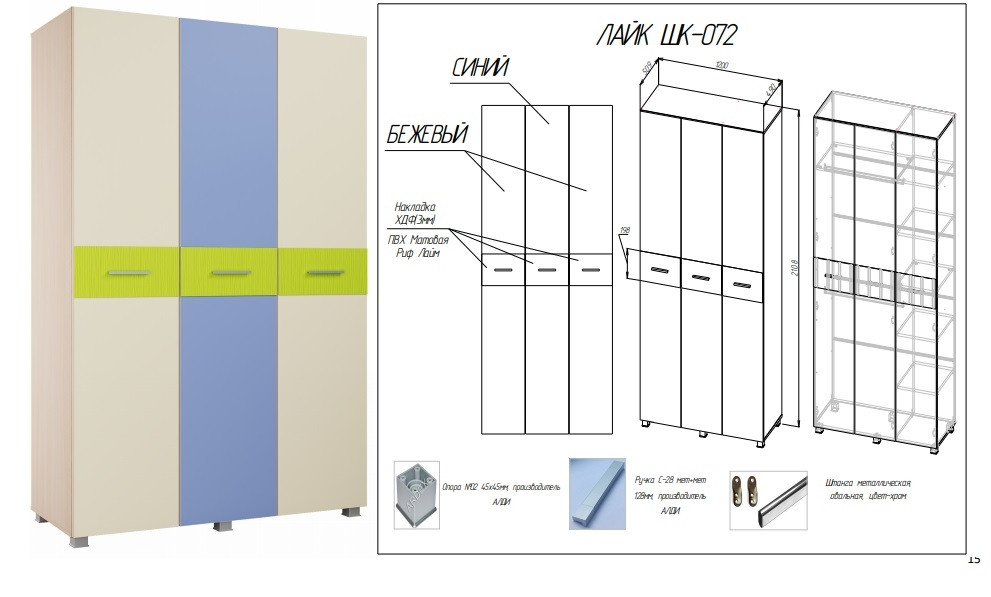 • Материал: ЛДСП 16мм/МДФ 10мм/Накладки на фасадах выполненные из ХДФ толщиной 3мм облицованного пленкой ПВХ Матовая Риф Лайм.