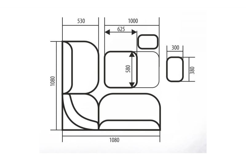 Размер углового дивана: 1080х880х530